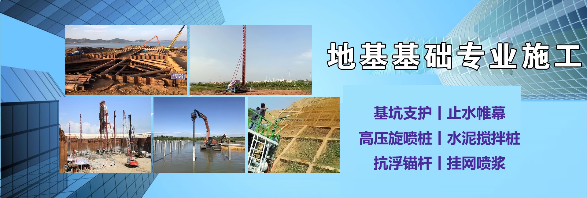 高壓旋噴樁施工 水泥攪拌樁施工 三軸攪拌樁施工 注漿加固 錨桿錨索施工 鋼板樁施工 光伏樁施工 CFG樁施工 掛網(wǎng)噴錨施工 基坑支護(hù) 鋼管樁施工